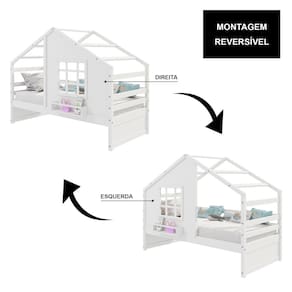 Diferenciais:Casinha com fechamento em MDF, Janela e Prateleira para Livros e Decoração,Montagem Reversível (Lado Direito ou Lado Esquerdo)