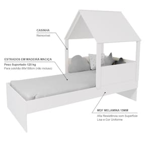 Diferenciais: MDF Melamina 15mm, Estrados em Madeira Maciça, Casinha com Telhado.