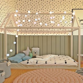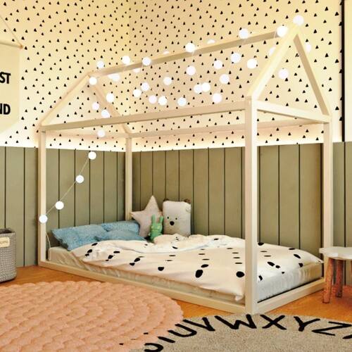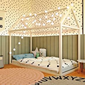 Ter uma cama que acompanhe o desenvolvimento da criança é muito importante. A cama infantil em formato de casinha e sem proteção nas laterais é perfeita para os mais grandinhos. Ela possui a altura recomendada para trazer mais autonomia e segurança aos nossos filhos. A cama infantil ainda tem formato de casinha, que permite pendurar acessórios como luzes ou mesmo tecidos para tornar o espaço ainda mais lúdico e divertido. MATERIAL Produto sustentável, utiliza madeira de reflorestamento sem nós (Pinus), que garante perfeição e homogeneidade na cor. Acabamento premium e com cantos arredondados para maior segurança das crianças. Fixadores internos que mantém a integridade do produto após desmontagens. ADVERTÊNCIAS Não acompanha colchão e itens de decoração.