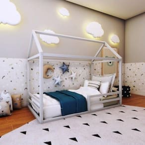 A Cama Casinha Solteiro, adota o estilo Montessoriano e foi pensada para atender o cliente de bom gosto e que busca o melhor custo benefício. MATERIAL Produto com viés sustentável, utilizando madeira certificada de reflorestamento sem nós (Pinus), que garante perfeição e homogeneidade na cor. Acabamento premium com cantos arredondados para maior segurança das crianças. Fixadores internos que mantém a integridade do produto após desmontagens. Acoplamento do suporte do telhado sem parafuso aparente, garantindo encaixes perfeitos e primando pela beleza. Tinta PU especial para móveis infantis, que não deixa cheiro. ADVERTÊNCIAS A tonalidade da cor do produto pode variar entre a imagem de exibição de exibição do site e o item físico. Não acompanha colchão e itens de decoração.