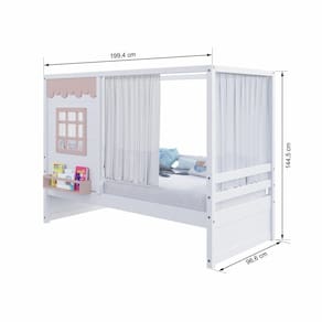 Diferenciais: Casinha com fechamento em MDF, Janela e Prateleira para Livros e Decoração, Montagem Reversível (Lado Direito ou Lado Esquerdo)