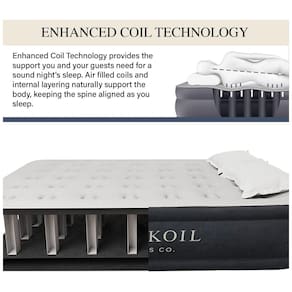 Top de edredão confortável à prova de água extra espesso com apoio extra para a coluna o colchão firme proporciona uma boa postura de dormir o top acolchoado mantém a cama no lugar. Califórnia king size com construção em espiral e uma bomba de 120v , 210w ac embutida dimensões infladas 213 x 18 x se você acidentalmente perfurar ou rasgar seu colchão de ar, todos os colchões de ar King Koil incluem kits de remendo. A bomba interna plug in fácil de usar permite uma inflação , desinsuflação fácil e rápida. O colchão King Koil atinge a inflação total em 2 minutos e 30 segundos. O colchão de ar King Koil foi projetado para uso doméstico e é perfeito para hóspedes que pernoitam, amigos ou parentes e viagens de acampamento. Lembre se de que, embora ela retenha o ar extremamente bem, você sempre pode clicar na bomba por alguns segundos para inflar ou esvaziar até o nível de conforto desejado Marca: Não Informado