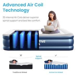 INFLAÇÃO RÁPIDA Colchão de ar Queen Size com bomba elétrica fácil de usar integrada infla rapidamente a total firmeza em menos de 3 minutos. Ao apertar um botão, ele esvazia automaticamente o colchão de ar para facilitar o zenamento e o transporte. ALMOFADA INCORPORADA A almofada embutida proporciona suporte de cabeça e pescoço com conforto semelhante a uma cama durante a noite. PROJETO ERGONÔMICO O leito de sopro é equipado com 35 bobinas de ar estruturadas para máximo apoio e durabilidade. Esta avançada tecnologia de conforto garante um excelente apoio ao seu corpo para uma boa noite de sono. ESTRUTURA DURÁVEL Uma camada superior flocada extra grossa, resistente ao desgaste e impermeável foi projetada com um material multicamadas, resistente a perfurações de agulhas com 1, 15 gauge. Tamanho Queen Airbed com dimensões infladas de 60 x 80 x 20 1.53 m x 2,03 m x 0.51 m . Pedaços de reparo de punção e bolsa de transporte incluído Marca: Não Informado