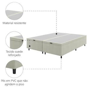 Certifique-se de tudo antes de finalizar a compra, evitando assim futuros desagrados ou imprevistos com a . MEDIDAS (Cada um):: [ A ] = 41 cm / 35 cm (sem pés) [ L ] = 96 cm [ P ] = 203 cm | PESO:: 83,5kg | SUPORTA ATÉ:: 300kg por pessoa | PÉS:: 6 cm | MODELO:: Cama Com Baú King 1,93m Suede | MARCA:: Prince | COR:: Bege | MATERIAL DA ESTRUTURA:: Eucalipto e Pinus | MATERIAL DOS PÉS:: PVC | QUANTIDADE DE PÉS:: 12 | :: 3 Meses | ITENS INCLUSOS:: 2 Baú de 0,96m | AVISO:: A Esplanada Móveis se responsabiliza pela dos produtos adquiridos até a porta de entrada ou portaria do indicado, se a portaria do condomínio permitir, as são efetuadas no piso térreo e é de responsabilidade do cliente. | TECIDO:: Suede | ALTURA:: 41 | LARGURA:: 96 | COMPRIMENTO:: 203 | QUANTIDADE DE CAIXAS DE EMBALAGEM:: 2 | TAMANHO:: KING | TIPO DE ENCHIMENTO:: Eucalipto e Pinus Cor: Bege