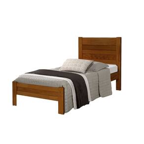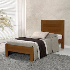 Cama com Colchão Solteiro Lara Madeira - Castanho - Marrom