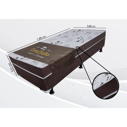 DESCRIÇÃO - MODELO D33 Se você procura uma cama com alta qualidade em seus materiais e ideal para sustentação da sua coluna, essa é pra você! Confeccionada com uma camada especial de 7cm de espessura de espuma de poliuretano D33, seu colchão proporciona excelente conforto, uma vida longa, durável e função ortopédica. Já sua base box conta com uma madeira de excelente qualidade e maior altura do chão, deixando seu design muito mais arrojado e sofisticado. Isso tudo, sem contar com seu tecido todo bordado em matelassê, dando o toque de maciez e elegância que você merece, ainda com o tradicional tratamento antiácaro, antifúngico e antialérgico, preservando a sua saúde. Não tenha medo de errar, tenha um sono restaurador com esta cama da Ortobello