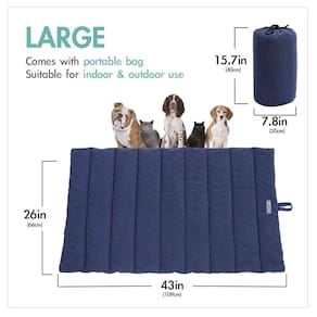 utilizado como tapetes para cães para dormir em ambientes internos e externos, cama externa para filhotes e gatos, capa de tapete de resfriamento para cobertor azul médio e grande, capas de sofá para manter os cães longe. Feito de material de poliéster durável, dá aos seus animais de estimação conforto ao mesmo tempo ainda resistente a arranhões, garras danificadas e uso prolongado. Superfície à prova d'água, não se preocupe em ter qualquer urina vestigial no chão de madeira, sofás e outros móveis. Material lavável dentro fácil de limpar com um pano úmido na lavagem à mão ou use a sujeira da mangueira para limpar. Desdobre em tamanho grande de 109 cm x 66 cm, pode ser enrolado na bolsa com cordão, facilmente levado como cobertor para qualquer lugar. utilizado em diferentes tamanhos de camas de cães e gatos, colchões caninos, almofadas de sofá, assentos de carro, gramado, praia, interior ou exterior para um tapete ou cobertores Seu animal de estimação vai adorar o toque confortável em seu corpo e você aproveitará o dia e a noite com ele. - Impermeável e tamanho grande: o tapete de cachorro impermeável é feito de pano macio, resistente à água para quase todos os climas, água ou gotas de chuva podem ser facilmente removidos do tapete instantaneamente. Não recomendamos deixar a água no tapete por muito tempo. Esta almofada tem 109 cm x 66 cm, tamanho grande para cães médios e grandes - Uso externo e interno: cama perfeita para cães ao ar livre, adequada como tapete de acampamento, tapete de dormir para animais de estimação, tapete de carro de viagem; também é perfeita como tapete de cachorro interno, adequado para tapete de gaiola, tapete de canil. - Durável e lavável: o tapete é durável com costura refinada, resistente a arranhões e resistente a garras, mas não recomendado para mastigadores agressivos; o tapete é lavável, lavado na máquina com círculo suave ou lavado à mão - Embalável e portátil: a cama para cães é embalável, uma bolsa de transporte está no pacote, o tapete pode ser facilmente dobrado e colocado na bolsa; a bolsa é portátil, enrole o tapete, conveniente para viagens, acampamento e outras atividades ao ar livre - Fácil de limpar: a parte frontal é de material Oxford, fácil de limpar, as manchas podem ser facilmente limpas com um pano úmido