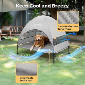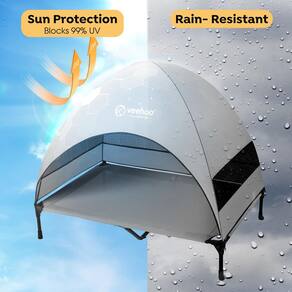 Veehoo Cama elevada para cães com proteção contra raios UV. Chega de se preocupar com os raios solares agressivos!