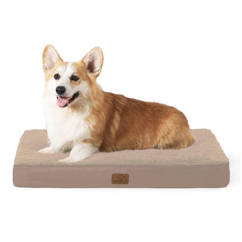 Bedsure Cama grande para cães – camas ortopédicas impermeáveis para filhotes com capa lavável removível, tapete de espuma para ovos, adequado para animais de estimação de até 22,7 kg - Projetado para animais de estimação: o design clássico do colchão de cama para animais de estimação dá ao seu amigo fofo muito espaço para se espalhar e ficar confortável em qualquer posição. Fácil de transportar e ideal para uso interno e externo, em uma caixa, em seu carro ou onde quer que a vida leve você. - Cama para todas as estações: O design frente e verso apresenta sherpa quente e aconchegante com um lado inverso de tecido Oxford fresco e macio. Durável e adequado para uso em todas as estações — mantenha seu cão fresco no verão e aquecido no inverno para maior conforto. - Suporte ortopédico: projetado para dar ao seu animal de estimação suporte incomparável para um sono profundo e sonhador. A espuma de caixa de ovos de alta densidade distribui o peso uniformemente e oferece a quantidade perfeita de alívio de pressão para reduzir a dor nas articulações e o desconforto da artrite. - Materiais seguros para animais de estimação: espuma certificada CertiPUR-US e sherpa de luxo se unem para criar uma cama de cachorro que é tão segura quanto confortável. - Capa removível de fácil manutenção: com uma capa fácil de remover, durável e resistente a manchas que facilita a limpeza profunda. Basta lavar e secar na máquina.