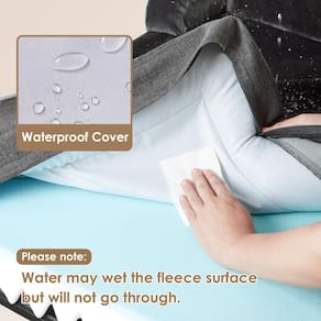 - Película impermeável e parte inferior antiderrapante: há uma película à prova d'água entre a superfície de lã e o tecido inferior que torna a cama de cachorro à prova d'água. No entanto, o linho sintético na lateral não é à prova d'água. Uma ponta antiderrapante na parte inferior não é fácil de deslizar e mantém a cama do seu cão estável.