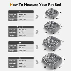 - Escolha de tamanho: Cama para cães pequenos ou gatos de até 6,8 kg, o tamanho externo é 50,8 x 48,3 x 15,2 cm; Cama de cachorro pequena e média para animais de estimação de até 13,6 kg, o tamanho externo é 63,5 x 53,3 x 20,3 cm; Cama de cachorro média para cães médios de até 18 kg, o tamanho externo é 76,2 cm x 61 x 23 cm; Cama grande para cães grandes de até 27 kg, o tamanho externo é de 89 x 63 x 23 cm; para comprar o tamanho adequado. Meça o tamanho do seu animal de estimação antes de comprar.