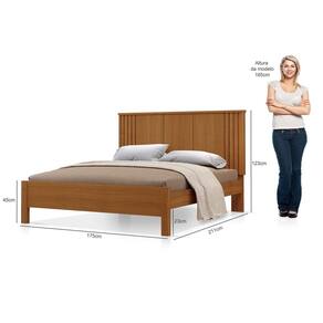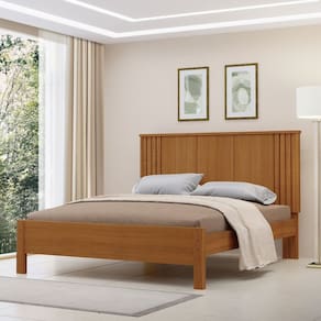 O estrado é extremamente reforçado, com ripas de MDF de 1,2 cm, cinco travessas de 2,5 cm e barras laterais também em MDF de 2,5 cm — espessuras superiores às normalmente utilizadas no mercado; os pés da cabeceira e da peseira possuem sapatas antiumidade.