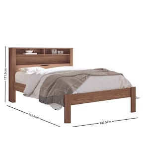Pensado no bem-estar e no aconchego, esta cama é uma ótima alternativa. Ela possui baú na cabeceira, oferecendo um amplo espaço para guardar travesseiros, lençóis, etc. Prateleiras para apoio de objetos como livros, celulares, pequenas caixas, etc. Barras laterais em MDF 18 mm e estrutura total em 15 e 25 mm. O estrado é em madeira cedrilho de alta qualidade. A Cama Casal permite a utilização de colchões com 1,38 m de largura.