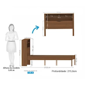 Informações Complementares - Estrado em Madeira Pinus e MDF 9mm - Barras laterais em MDF 18mm - Pés em MDP 25mm - Fundo do baú em HDF 2,5mm - Baú com puxador em recorte usinado
