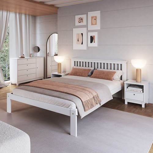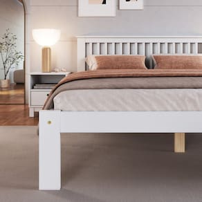 Apresentamos a Cama de Casal Júlia da B&B, a escolha perfeita para quem valoriza estilo e durabilidade. Produzida em madeira maciça, com acabamento em pintura UV, a cama de Casal Júlia não apenas exibe um visual sofisticado e clássico, mas também garante resistência, mantendo sua beleza por muito mais tempo. Projetada para oferecer conforto e suporte, a estrutura robusta em madeira maciça proporciona estabilidade e segurança para uma boa noite de sono. Seu design elegante e atemporal se adapta facilmente a qualquer decoração, tornando-a uma peça central no seu quarto. Transforme seu espaço com a Cama de Casal Júlia e desfrute do que há de melhor em qualidade e estilo. Não perca a chance de elevar seu descanso a um novo nível! Produto Montado: Sim Acabamento dos Pés: Pintura Acompanha Cama Auxiliar: Não Acompanha Colchão: Não Altura do Estrado até o Chão: 32,5 cm Altura do Estrado Superior até o Chão: 33.5000 Altura dos Pés: 34,8 cm Ambiente Principal: Quarto codigo_ean: 7909903961032 Complexidade da Montagem: Baixa: pode ser montado por uma pessoa sozinha Cor: Branco Cor do Produto: Branco Cor Flex: Não Escala de Brilho: Semi-Brilho Extensível: Não Itens Inclusos: 1 Cama e Manual de Montagem Manual de Montagem e Instalação: https://product-hub-prd.madeiramadeira.com.br/956313/documents/8c921882-b4cc-4c4a-a579-539c772d08442418526127017279585106441.pdf Material do Estrado: Madeira Maciça Material dos Pés: Madeira Maciça Material Principal: Madeira Maciça Montagem Flex: Não Necessita Montagem: Sim Origem do Produto: Nacional Permite a Utilização de Cama Auxiliar: Não Peso: 23,95 kg Peso Suportado por cada cama: 120.0000 Possui Baú: Não Possui Escrivaninha: Não Possui Gavetas: Não Possui Grade: Não Possui Nichos: Não Possui Pés: 04 Possui Portas: Não Possui Prateleiras: Não Possui Rodízio: Não Recomendações de Uso, Manutenção e Limpeza: Deve ser feita com pano macio e seco ou levemente umedecido com água e sabão neutro. Não devem ser utilizados abrasivos como palha de aço e objetos cortantes. Sapatas Niveladoras: Não Sistema de Montagem: Parafusos e Minifix Tamanho da Cama: Casal Tamanho do Colchão Indicado (L x C): 138cm x 188cm Tipo de Cama: Convencional Tipo de Colchão: Casal Tipo de Estrado: Fixo Tipo de Madeira Maciça: Pinus Tipo de Madeira Maciça dos Pés: Pinus Trava de Segurança: Não