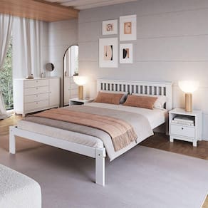 Cama De Casal Júlia De Madeira Maciça Com Lastro Branco Apresentamos a Cama de Casal Julia da BB, a escolha perfeita para quem valoriza estilo e durabilidade. Produzida em madeira macica, com acabamento em pintura UV, a cama de Casal Julia nao apenas exibe um visual sofisticado e classico, mas tambem garante resistencia, mantendo sua beleza por muito mais tempo. Projetada para oferecer conforto e suporte, a estrutura robusta em madeira macica proporciona estabilidade e seguranca para uma boa noite de sono. Seu design elegante e atemporal se adapta facilmente a qualquer decoracao, tornando-a uma peca central no seu quarto. Transforme seu espaco com a Cama de Casal Julia e desfrute do que ha de melhor em qualidade e estilo. Nao perca a chance de elevar seu descanso a um nivel! Deve ser feita com pano macio e seco ou levemente umedecido com agua e sabao neutro. Nao devem ser utilizados abrasivos como palha de aco e objetos cortantes. Caracteristicas Gerais: Material: Madeira Macica Acabamento: Pintura Uv Semi Brilho Pes: 5 Tipos de Pes: Madeira Macica Material do Estrado: Madeira Macica Recomendacao de Colchao: 1,88x1,38 Acompanha Colchao: Nao Altura do Estrado Ate o Chao (cm): 32,5 Peso Recomendado: 120 Kg (por Pessoa/gaveta/prateleira) Bordas: Pintura Uv Kit Ferragem Completo: Sim Manual de Montagem Detalhado: Sim Produto Nacional: Sim