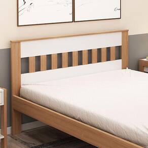 cama que possui estrados e cabeceira também em madeira com detalhes na parte central, contribuindo para o design moderno do móvel.