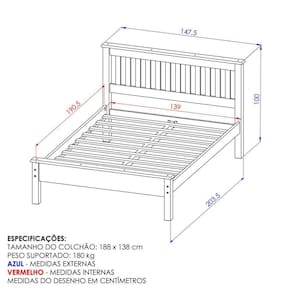 Conteúdo da Embalagem: 1 (uma) Cama de Casal Manual de Montagem Kit Ferragem