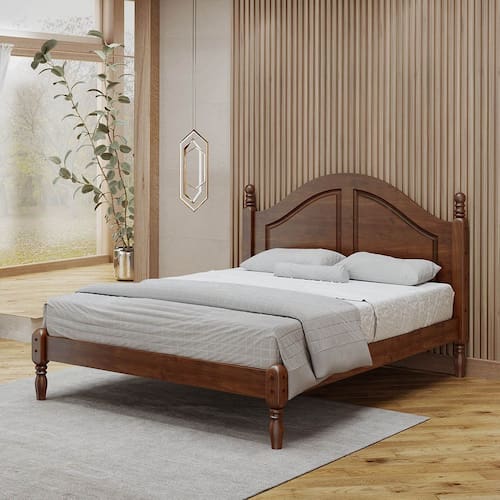 Cama de Casal Queen 214cm x 170cm com pés torneados Ouro Café Madeira Pinus - Finestra