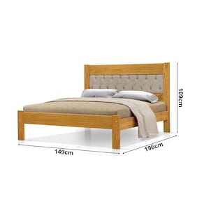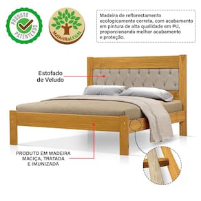 Cama de Casal Viena com Cabeceira Captonê Veludo Bege Madeira Imbuia - Marrom