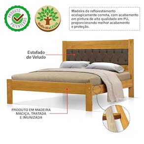 Características: Modelo: Viena Tipo: Cama de Casal Material da Estrutura: Madeira Cor da Estrutura: Imbuia Material da Cabeceira: Veludo Cor da Cabeceira: Marrom Design elegante e funcional