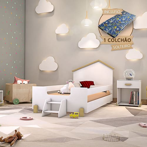 Cama De Criança Infantil Com Colchão E Escadinha Solteiro Ayla - Branca E Natural A Cama Ayla é produzida pensando no desenvolvimento da criatividade das crianças, a cama possui um design em formato de casinha e um estilo montessoriano, no qual deixa o colchão mais próximo do chão trazendo segurança para o seu pequeno. Fabricado em material MDF e com pés em madeira maciça o produto tem resistência e durabilidade no qual a criança precisa.