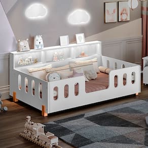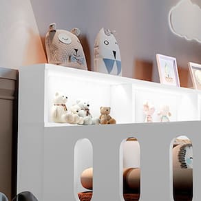 Cama Infantil Montessoriana Led Nina Com Nicho - Branco A Cama Infantil Montessoriano Nina é moderna e lúdica no que se refere a decoração infantil. Uma forma de decorar o quarto da criança de forma inovadora, divertida e segura. Sua estrutura é rente ao chão, o que permite a criança mais segurança, e assim ela podendo explorar e dar ainda mais vazão à sua necessidade de aprender, além de estimular o seu desenvolvimento.