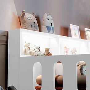 Garantia: 90 dias Pintura UV Verniz Produto Desmontado Nicho porta objetos com LED Acompanha lousa mágica (Produto Ecológico, Salva 3 Árvores, para o Desenvolvimento, Botão para Limpar, Bateria Média 2 Anos) Não acompanha colchão Objetos que compõem a imagem ambientada não acompanham o produto