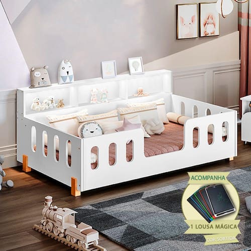 A Cama Infantil Montessoriano Nina é moderna e lúdica no que se refere a decoração infantil. Uma forma de decorar o quarto da criança de forma inovadora, divertida e segura. Sua estrutura é rente ao chão, o que permite a criança mais segurança, e assim ela podendo explorar e dar ainda mais vazão à sua necessidade de aprender, além de estimular o seu desenvolvimento.Tipo: Cama InfantilModelo: NinaCor: BrancoGarantia: 90 diasPintura UV VernizProduto DesmontadoNicho porta objetos com LEDAcompanha lousa mágica (Produto Ecológico, Salva 3 Árvores, para o Desenvolvimento, Botão para Limpar, Bateria Média 2 Anos)Não acompanha colchãoObjetos que compõem a imagem ambientada não acompanham o produtoMedidas:Altura: 64cmLargura: 85cmComprimento: 153cmATENÇÃOIMAGENS MERAMENTE ILUSTRATIVAS REALIZADO EDIÇÃO, PODENDO HAVER UMA PEQUENA VARIAÇÃO DE COR DEPENDENDO DE CADA TELA OU MONITOR. Marca: BABY MOBILIA