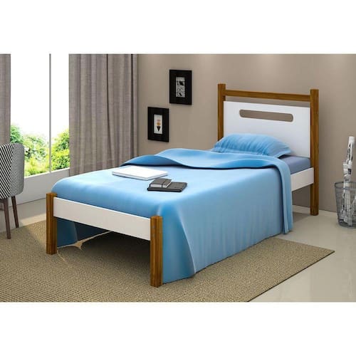 Cama De Solteiro Design Eloa Branco Com Mel - Cor: Branco