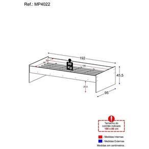 A Cama de Solteiro Dublin Multimóveis é produzida em MDP com acabamento acetinado (cerca de 20% de brilho), que garante maior durabilidade e resistência, e suporta até 90 kg. Tamanho do colchão indicado: 1,88 x 0,88.