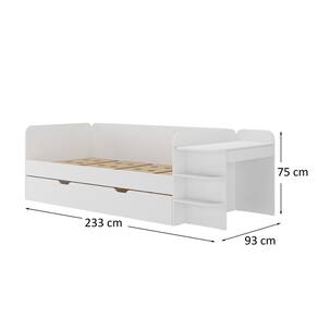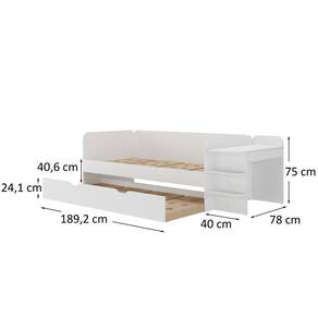 Com resistência, funcionalidade e acabamento refinado, a cama Helena transforma qualquer quarto infantil em um espaço acolhedor, bonito e organizado. Acabamento da Gaveta: Melamínico Acabamento da Prateleira: Melamínico Acompanha Cama Auxiliar: Sim Acompanha Colchão: Não Altura do Estrado até o Chão: 7,7 cm Ambiente Principal: Quarto Infantil Cama Auxiliar Acompanha Colchão: Não Cama Auxiliar com Rodízio: Sim Cama Auxiliar Suporta Até (kg): 80 kg codigo_ean: 7900288264572 Complexidade da Montagem: Média: pode ser montado por mais de uma pessoa e/ou necessite de maior conhecimento para montagem Cor: Branco Cor do Produto: Branco Cor Flex: Não Escala de Brilho: Fosco Escala de Brilho da Gaveta: Fosco Escala de Brilho da Prateleira: Fosco Extensível: Sim Gaveta com Chave: Não Itens Inclusos: 1 Bicama, Kit de Ferragens e Manual de Montagem Largura Máxima: 186 cm Largura Mínima: 93 cm Linha ou Coleção: Helena Manual de Montagem e Instalação: https://product-hub-prd.madeiramadeira.com.br/922924108/documents/d681b2a0-0e5f-4d09-9290-c7a1cc8d1a063252532657817593273626899.pdf Marca: FD Material da Gaveta: MDF Material da Prateleira: MDF Material Principal: MDF modular: Não Montagem Flex: Não Necessita Montagem: Sim Origem do Produto: Nacional Permite a Utilização de Cama Auxiliar: Sim Peso: 90 kg Peso Máximo por Gaveta: 5 kg Peso Máximo por Prateleira: 5 kg Possui Baú: Não Possui Escrivaninha: Sim Possui Pés: Não Possui Portas: Não Possui Prateleiras: Sim Recomendações de Uso, Manutenção e Limpeza: Limpar somente com um pano levemente umedecido. Indicado para ambientes internos Sistema de Montagem: Parafusos, cavilhas e minifix Suporta Até (kg): 165 kg Tamanho da Cama: Solteiro Tamanho do Colchão Indicado (L x C): 88cmx188cm Tamanho do Colchão Indicado Cama Auxiliar: 88x188 Tipo de Cama: Bicama Tipo de Colchão: Solteiro Tipo de Corrediça da Gaveta: Metálica Telescópica Tipo de Estrado: Fixo Tipo de Puxador da Gaveta: Embutido