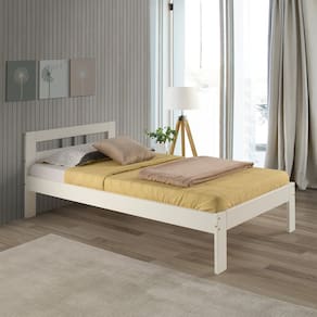 A cama de solteiro Fana traz aconchego e simplicidade, com um toque de elegância natural. Confeccionada em madeira maciça de pinus reflorestado, oferece uma estrutura firme , durável e ecologicamente correta. Seu visual leve e atemporal se adapta com facilidade a quartos infantis, de hóspedes ou ambientes compactos. O acabamento em branco, a cabeceira com acabamento vazado adiciona charme e personalidade ao conjunto. Ideal para quem valoriza móveis funcionais e com estilo, a Fana é a escolha certa para compor um ambiente harmonioso e acolhedor. Produto Montado: Sim Acabamento dos Pés: Pintura Acompanha Cama Auxiliar: Não Acompanha Colchão: Não Altura do Estrado até o Chão: 27 cm Altura dos Pés: 36 cm Altura Máxima dos Pés: 36.0000 Ambiente Principal: Quarto codigo_ean: 7900288161239 Complexidade da Montagem: Baixa: pode ser montado por uma pessoa sozinha Comprimento: 195 cm Cor: Branco Cor do Produto: Branco Escala de Brilho: Fosco Extensível: Não Itens Inclusos: 1 Cama Manual de Montagem e Instalação: https://product-hub-prd.madeiramadeira.com.br/989074165/documents/5acac75c-8eba-48a3-adec-509d4a5eda452956680587817483719316394.pdf Marca: FAMACHIQ Material dos Pés: Madeira Maciça Material Principal: Madeira Maciça Necessita Montagem: Sim Origem do Produto: Nacional Permite a Utilização de Cama Auxiliar: Não Peso: 18,5 kg Peso Suportado por cada cama: 150.0000 Possui Baú: Não Possui Escrivaninha: Não Possui Espelhos: Não Possui Gavetas: Não Possui Grade: Não Possui Nichos: Não Possui Pés: 04 Possui Portas: Não Possui Prateleiras: Não Possui Rodízio: Sim Recomendações de Uso, Manutenção e Limpeza: Flanela com lustra móveis Rodízio com Trava: Não Sapatas Niveladoras: Não Sistema de Montagem: Parafusos, cavilhas e cola Tamanho da Cama: Solteiro Tamanho do Colchão Indicado (L x C): 90x190cm Tipo de Cama: Convencional Tipo de Colchão: Solteiro Tipo de Estrado: Removível Tipo de Madeira Maciça: Pinus Tipo de Madeira Maciça dos Pés: Pinus Trava de Segurança: Não Marca: Não Informado