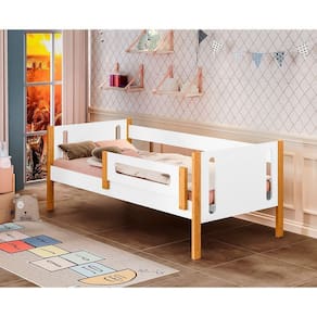 Cama De Solteiro Mirela Branco/ Mel Com Grade De ProteçãoA cama infantil Mirela possui elegância e modernidade sem perder o conforto. Ainda oferece uma maior autonomia para o pequeno descer e explorar todo o cômodo, o que deixa o espaço não só mais divertido como também perfeito para estimular o desenvolvimento sensorial.Tipo: Cama SolteiroModelo: MirelaCor: Branco com MelGarantia: 90 diasProduto DesmontadoAcompanha manual e kit de montagemCom Grade de Proteção dos dois ladosMaterial 100% MDFPés em madeira maciçaPintura UV Verniz BrilhoNão acompanha colchãoMedidas:Altura: 65cmLargura: 95cmComprimento: 195cmATENÇÃOIMAGENS MERAMENTE ILUSTRATIVAS REALIZADO EDIÇÃO, PODENDO HAVER UMA PEQUENA VARIAÇÃO DE COR DEPENDENDO DE CADA TELA OU MONITOR.Cama de Solteiro Mirela Branco/ Mel com Grade de ProteÃÃo Marca: Madeira Store