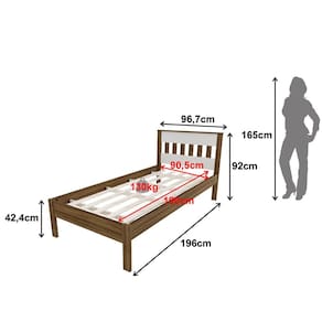 Cama de Solteiro Nogal Branco 96,7x196x92cm MDP Tecnomobili CM8006 até 130kg