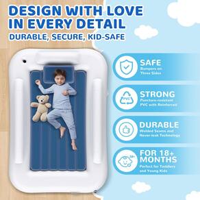 ?CAMA DE VIAGEM PARA CRIANÇAS PORTÁTIL - MATERIAL DE SEGURANÇA DURÁVEL?A cama infantil inflável é projetada para viajar com crianças. À prova de furos e sem vazamento combina PVC durável e resistente a perfurações com costuras soldadas reforçadas e tecnologia que nunca vaza. Não apenas pode liberar as mãos de segurar a criança em um curto espaço de tempo, mas também para o seu filho dormir ou brincar confortavelmente, o que é uma necessidade para longas distâncias. - ?Cama infantil portátil extragrande?Esta cama de viagem infantil é projetada com portabilidade e espaço em mente. O tamanho grande de 152 cm quando a cama inflável de viagem infantil inflada oferece muito espaço para as crianças brincarem e descansarem confortavelmente ao mesmo tempo, tornando-a ideal para famílias que estão sempre em movimento. Se você estiver indo acampar, visitar a família ou apenas precisa de uma cama extra para passar a noite, este colchão de ar infantil leve e fácil de embalar oferece a solução perfeita. - ?Design seguro e durável?A cama infantil de viagem é feita de materiais de PVC duráveis de alta qualidade que são resistentes a perfurações, garantindo que possa suportar o desgaste diário. Para maior segurança, a cama de viagem infantil é construída com laterais de segurança, criando uma barreira protetora que ajuda a evitar que as crianças rolem enquanto dormem ou brincam. Estas bordas elevadas proporcionam tranquilidade para os pais, especialmente durante o uso noturno. Além disso, o material é livre de produtos químicos nocivos, tornando-o seguro para crianças pequenas com pele sensível. - ?Fácil de inflar?A conveniência é fundamental quando se trata de cama inflável de viagem para crianças, e este colchão de ar infantil torna o processo de enchimento simples e rápido. Ele vem equipado com uma bomba de ar de alta eficiência com três tamanhos diferentes de bicos que permitem que o colchão de ar do bebê seja totalmente inflado em apenas alguns minutos. Essa flexibilidade o torna uma ferramenta multifuncional para famílias, permitindo que elas o usem além da própria cama. Esvaziar a cama é igualmente simples e pode ser enrolada e armazenada na bolsa de transporte. - ?Tecido macio e confortável?O material luxuoso oferece um ambiente confortável para dormir, imitando a suavidade dos colchões tradicionais. O tecido à prova d'água garante que qualquer derramamento ou acidente possa ser limpo rapidamente sem danificar a cama portátil para crianças, tornando-o ideal para crianças pequenas propensas a bagunça. Além disso, a superfície é fácil de limpar, então os pais não precisam se preocupar com manutenção. O material é projetado para fornecer calor durante noites mais frias enquanto ainda é respirável o suficiente para climas mais quentes. - ?Versátil para qualquer ocasião?Uma das características de destaque deste colchão de ar para bebês com laterais é sua versatilidade. É perfeito para uma variedade de situações, seja em casa, viajando, acampando ou indo para uma festa do pijama. A bolsa de transporte incluída garante que você possa levar a cama infantil portátil para viajar com você aonde quer que vá, tornando-a uma excelente opção para famílias que viajam com frequência. Seu design leve permite fácil transporte, e o tamanho compacto quando esvaziado significa que ocupa o mínimo de espaço em sua bagagem ou carro.