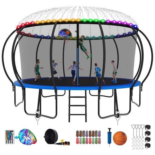 Jump Higher Jumper Happier With a LED trampoline light, sprinkler, meias, very suit for a family to play in the trampoline. 4 peças de pernas em forma de U 8 pontos de contato equilibrados fornecem uma base estável para pular. 80pcs molas tapete de salto de alta densidade fornecem energia para saltar. Será uma plataforma segura para Saltar, Dançar e Ler. Oferecendo a você uma sensação de paz enquanto joga no tatame.