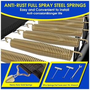 Capacidade de peso de 544 kgEste trampolim resistente de 2023 é feito de aço galvanizado de espessura pulverizada preta. O aço galvanizado tem a característica de durabilidade que faz com que não quebre por mais de 20 anos. Comparado com outros aços usuais, o aço galvanizado é mais estável, brilhante e mais confiável.