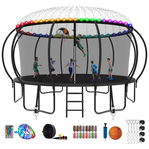 Cama Elastica Capacidade até 544 kg com Luz LED e Cesta de Basquete, SKYUP, Preto