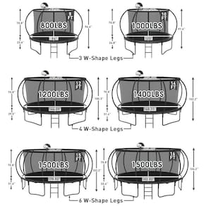 Capacidade de peso de 544 kgEste trampolim resistente de 2023 é feito de aço galvanizado de espessura pulverizada preta. O aço galvanizado tem a característica de durabilidade que faz com que não quebre por mais de 20 anos. Comparado com outros aços usuais, o aço galvanizado é mais estável, brilhante e mais confiável.