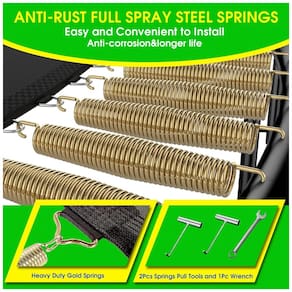 Capacidade de peso de 544 kgEste trampolim resistente de 2023 é feito de aço galvanizado de espessura pulverizada preta. O aço galvanizado tem a característica de durabilidade que faz com que não quebre por mais de 20 anos. Comparado com outros aços usuais, o aço galvanizado é mais estável, brilhante e mais confiável.