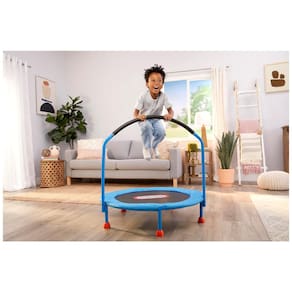 Trampolim perfeito para as crianças queimarem energia Possui grande superfície de salto e guidão para estabilidade Combinação de plástico e metal Trampolim é apenas para uso interno. Idade 3 a 6 anos. Aterramento para o topo do guidão . Superfície de salto para o topo do guidão Marca: Não Informado