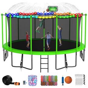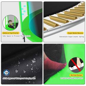 SEGURANÇA GARANTIDA A rede do gabinete de segurança está perfeitamente presa ao aço elimina o risco de prender as mãos ou os pés das crianças nas lacunas. Todos os postes de pé são acolchoados com tubos de espuma azul, evitando efetivamente que as crianças se machuquem ao cair nos postes da rede. Além disso, as molas são todas cobertas com uma almofada grossa e durável e expandiu a área de salto. ESTÁVEL E DE LONGA DURAÇÃO O trampolim de quintal possui estrutura de aço galvanizado por imersão a quente, que é 5 vezes mais longa que a galvanização comum. Um total de 6 pernas em forma de U para maior estabilidade. Os postes de pé são envoltos em estofamento à prova de intempéries que podem ser deixados ao sol sem medo e para uso a longo prazo. SALTAR COM FACILIDADE Fortes molas galvanizadas prendem com segurança a esteira e a estrutura de salto firmemente tecidas, oferecendo um salto superior e melhor. A rede de cerco de 6 pés de altura feita de PE ambiental garante segurança e rapidez absolutas ao pular. Capacidade máxima de peso 680 kg. BASKETBALL HOOPLADDER A escada de 3 degraus apresenta um espaço menor entre elas para uma escalada conveniente para crianças mais novas. A cesta de basquete flexível feita de material resistente às intempéries que não será facilmente danificada. E também vem com uma bomba de basquete e ar, que pode trazer uma infância feliz para seus filhos Marca: Não Informado