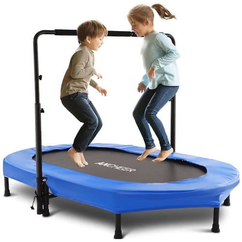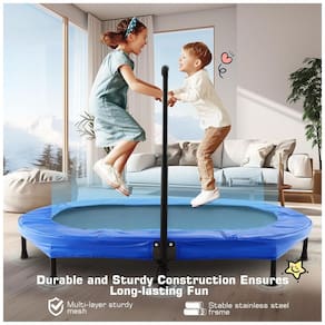 Material de boa qualidade A versão atualizada de terceira geração, aço engrossado de , estrutura resistente, tapete de salto PP, capa de almofada segura em PVC, mola preservadora de aço inoxidável de alta resistência, oferece um ambiente muito mais para as pessoas. Barra de alça ajustável Este trampolim com barra de alça ajustável, 5 níveis de altura, mais estabilidade e adequado para qualquer altura de pessoas para manter o equilíbrio. Ele foi projetado para caber em pequenos espaços na academia ou em casa, e seu tamanho conveniente permite que você o transporte de um local para outro sem problemas. Trampolim portátil Com estrutura de estrutura exclusiva, tamanho dobrado menor que 1, 4 Fácil de zenar seu trampolim em qualquer lugar, cama, sofá, porta malas, armário, etc. Design dobrável destacável, economizando espaço de zenamento. Sistema de salto As molas fechadas exclusivas conectam o tapete de salto pp à prova dágua fácil de limpar fornece um poderoso sistema de recuperação elástica para tornar adequado para saltos com mais de 3 anos de idade, eficiente e . 3000 experimentos de salto contínuo. Certifique se de que você pode pular com confiança