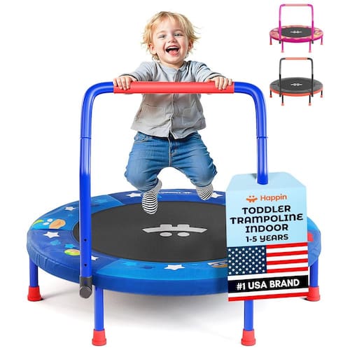 Incentive a atividade física dos seus filhos desde cedo com o mini trampolim infantil 36 da Happin Este modelo possui um corrimão para auxiliar as crianças menores a começarem a pular, podendo ser removido à medida que elas ficam mais experientes no trampolim. Projetado para ser silencioso, este trampolim interno é perfeito para proporcionar horas de diversão e brincadeiras imaginativas em segurança, com acolchoamento de mola de 1,5 de espessura. Além disso, este pequeno trampolim para crianças é versátil, podendo ser utilizado tanto dentro quanto fora de casa. O mini trampolim infantil é um excelente presente para crianças em idade pré escolar e infantil, sendo fácil de montar e armazenar. Com este trampolim interno para crianças, você pode desfrutar de horas de brincadeiras ativas, dentro ou fora de casa. Faça seu pedido agora e veja o rosto do seu filho se iluminar de alegria