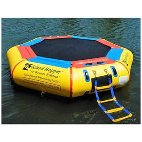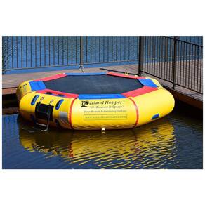 Exclusivo perímetro de espuma de Acolchoamento para conforto e segurança Construção pesada Usando material de PVC 1000 Denier Design bouncer de tecido de nylon entrelaçado sem mola Dimensões do Bouncer Superfície de salto de 2,3 metros e acima da água 8 alças assistidas por natação, 6 argolas em D seguras para ancoragem, escada de fácil acesso de 4 degraus Marca: Não Informado