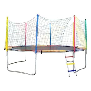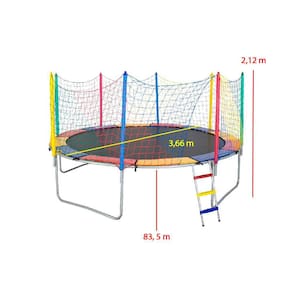 Uma Cama Elástica Completa, com Rede de Proteção Colorida (feita em malha 11) e Protetor de Molas Colorido, feito com espuma de alta densidade para evitar que a criança afunde o pé enquanto está brincando e pulando, além de contar com um revestimento em PVC impermeável.