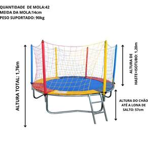 Cama Elástica Redonda 2,30m DIRETO DA FÁBRICA!-Estrutura toda fabricada em aço galvanizado, não enferruja e não descasca.-Sistema de encaixes que possibilita uma montagem fácil e rápida.-COR da LONA varia de acordo com estoque disponível.Especificações:- Sistema de impulsão por 42 molas;- 3 pés inteiros em "U";- Escada de 2 degraus;- Rede de proteção em polipropileno multicolorida;Piscina de Bolinhas Linha Premium Medidas: 1,00m x 1,00mItens Inclusos:- 4 placas em madeira revestidas com lona colorida de grande densidade;- 4 Hastes em Aço Galvanizado com Isotubo colorido blindado;- Rede de proteção Especial;- Toldo confeccionado com lona colorida de grande densidade;- Estrutura 100% em Aço Galvanizado;ATENÇÃO: Não inclui bolinhas. Contém na Embalagem: 1x Cama Elástica 2,30m1x Piscina de Bolinhas Quadrada 1,00mGarantia de Fabricação: 3 Meses.