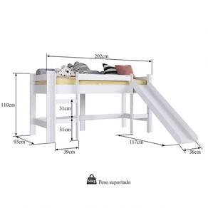 A Cama Alta é um móvel ótimo para compor o quarto das crianças, possui estrutura em MDP de alta qualidade e acabamento em BP, aumentando resistência e prolongando a vida útil do produto. Ela conta com e dois degraus do lado esquerdo que dão acesso á cama e escorregador do lado direito, demais né? Mas o ponto legal deste produto é que possui espaço suficiente na parte inferior para seus pequenos brincarem á vontade no conforto e aconchego do quarto! Um arraso, né?