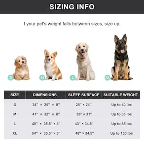 - O berço para cães é feito de tecido resistente à água e tem capacidade para até 68 kg, durável e testado quanto à resistência.